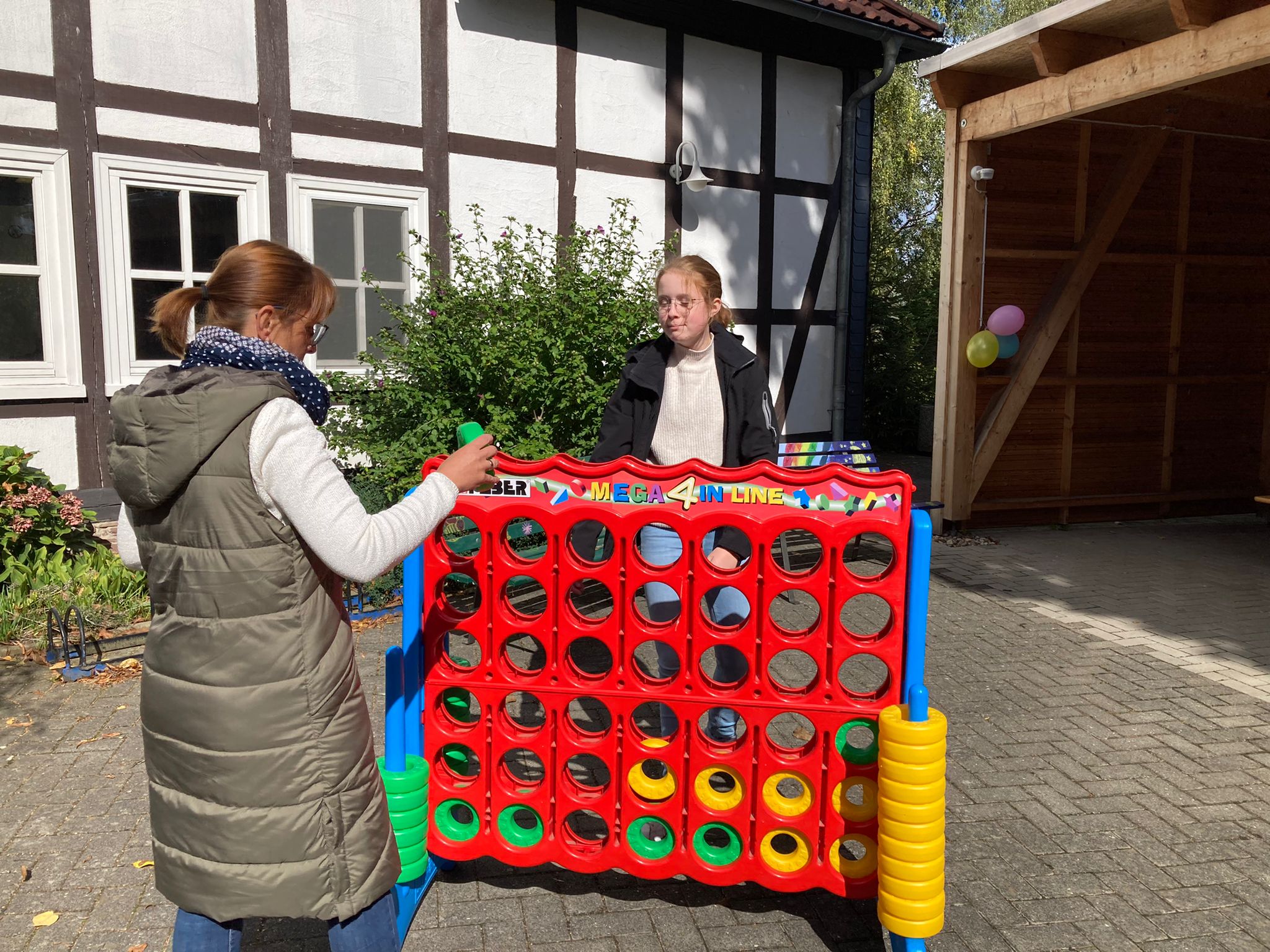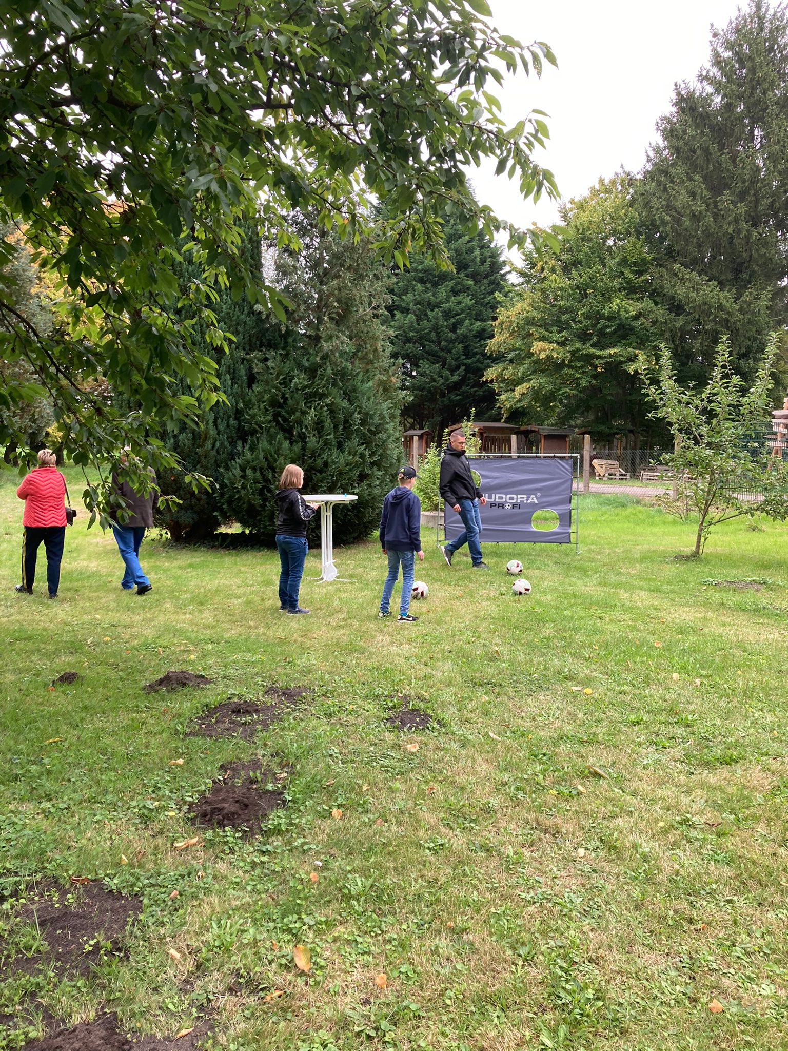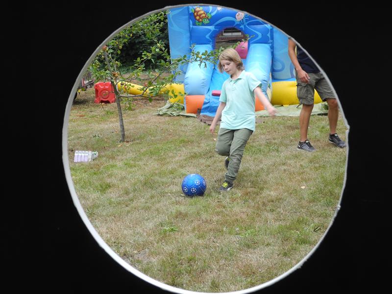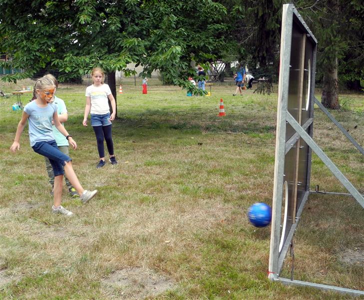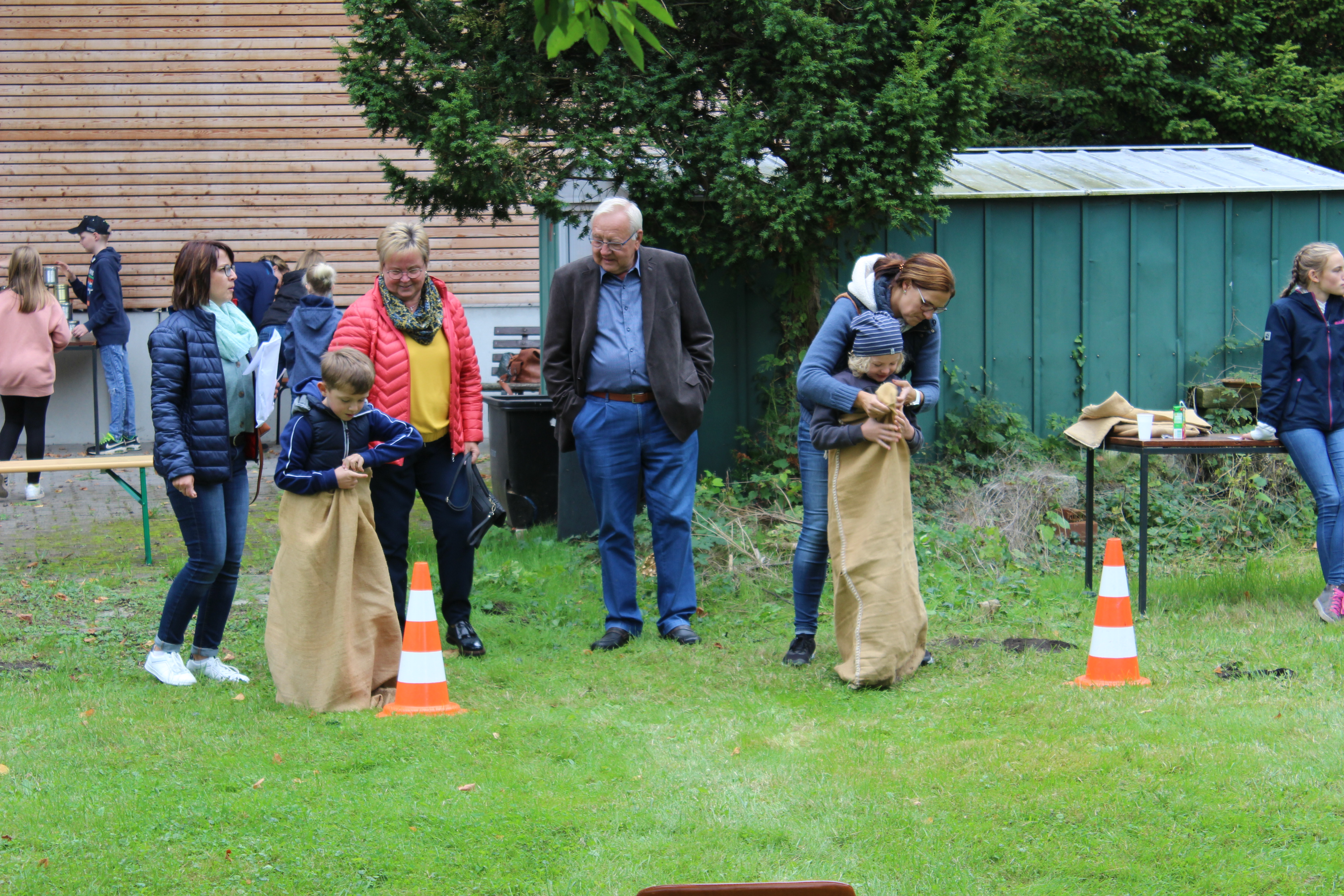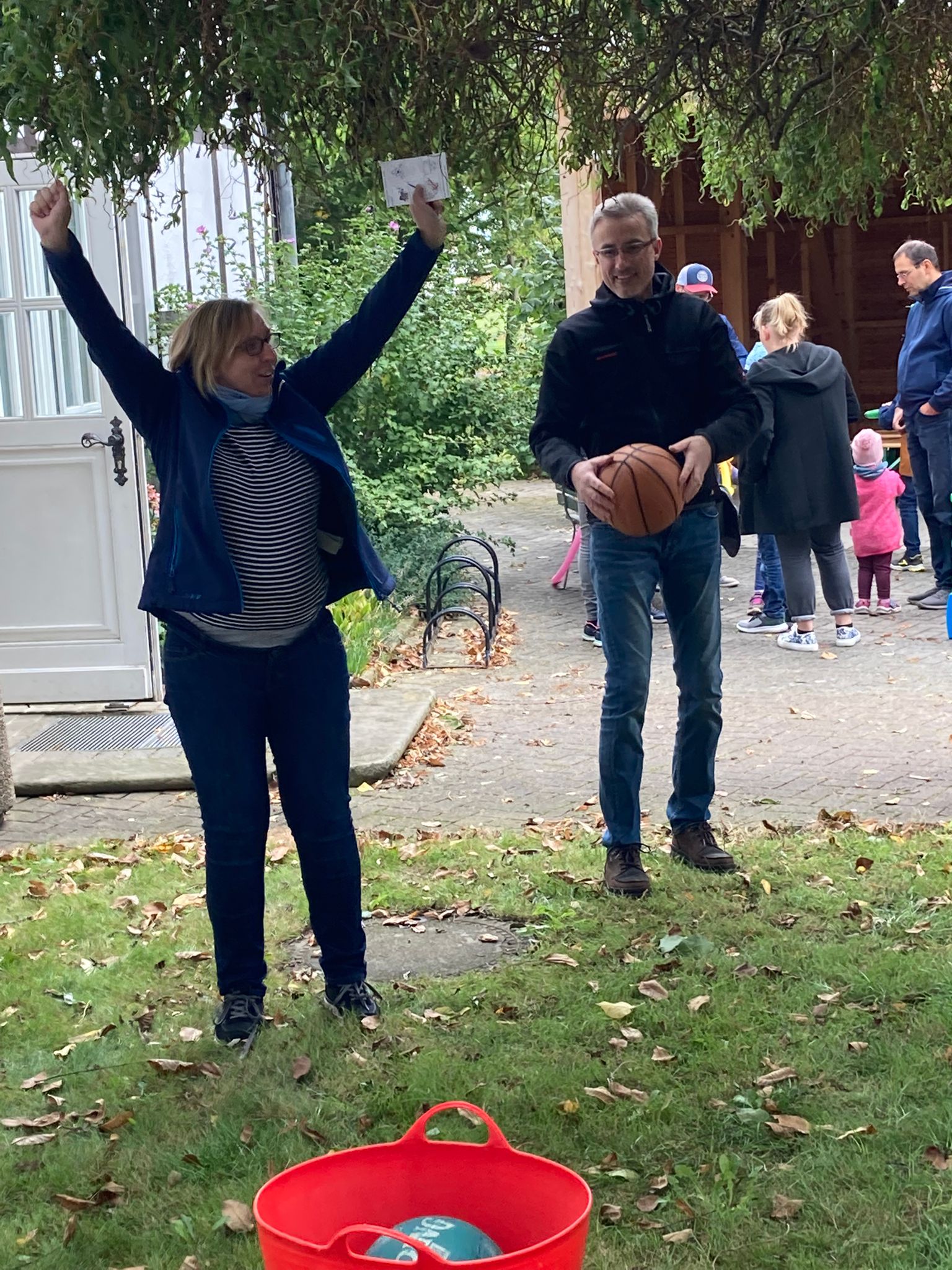 Im Anschluss ging es auf den Pfarrhof zum Familienfest. Dort konnten alle, egal ob groß oder klein, sich bei verschiedenen Spielen bewegen oder ihre Geschicklichkeit testen. Als Belohnung waren kleine Preise für die Kinder vorbereitet. Auch eine Hüpfburg stand wieder zum Toben bereit.