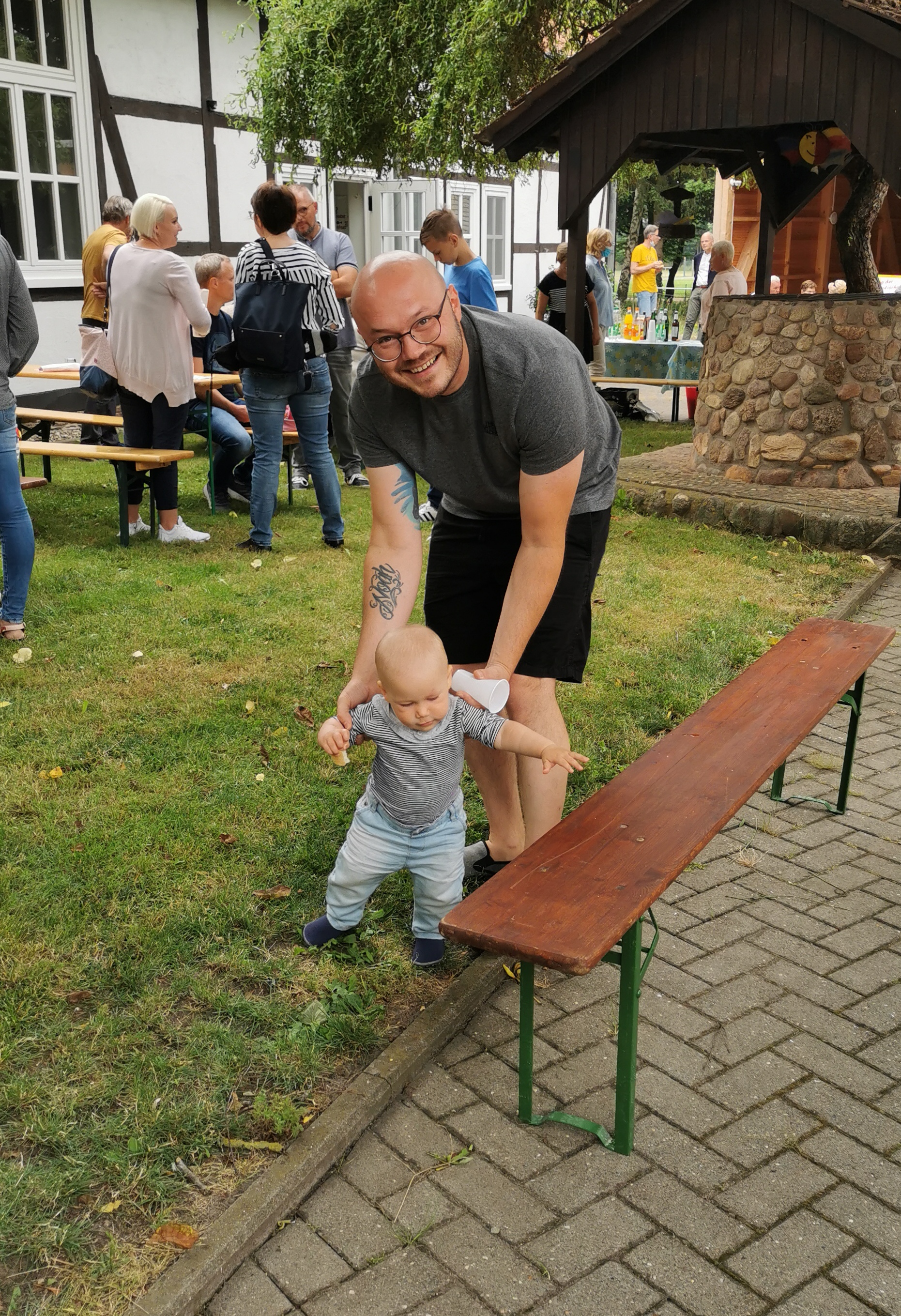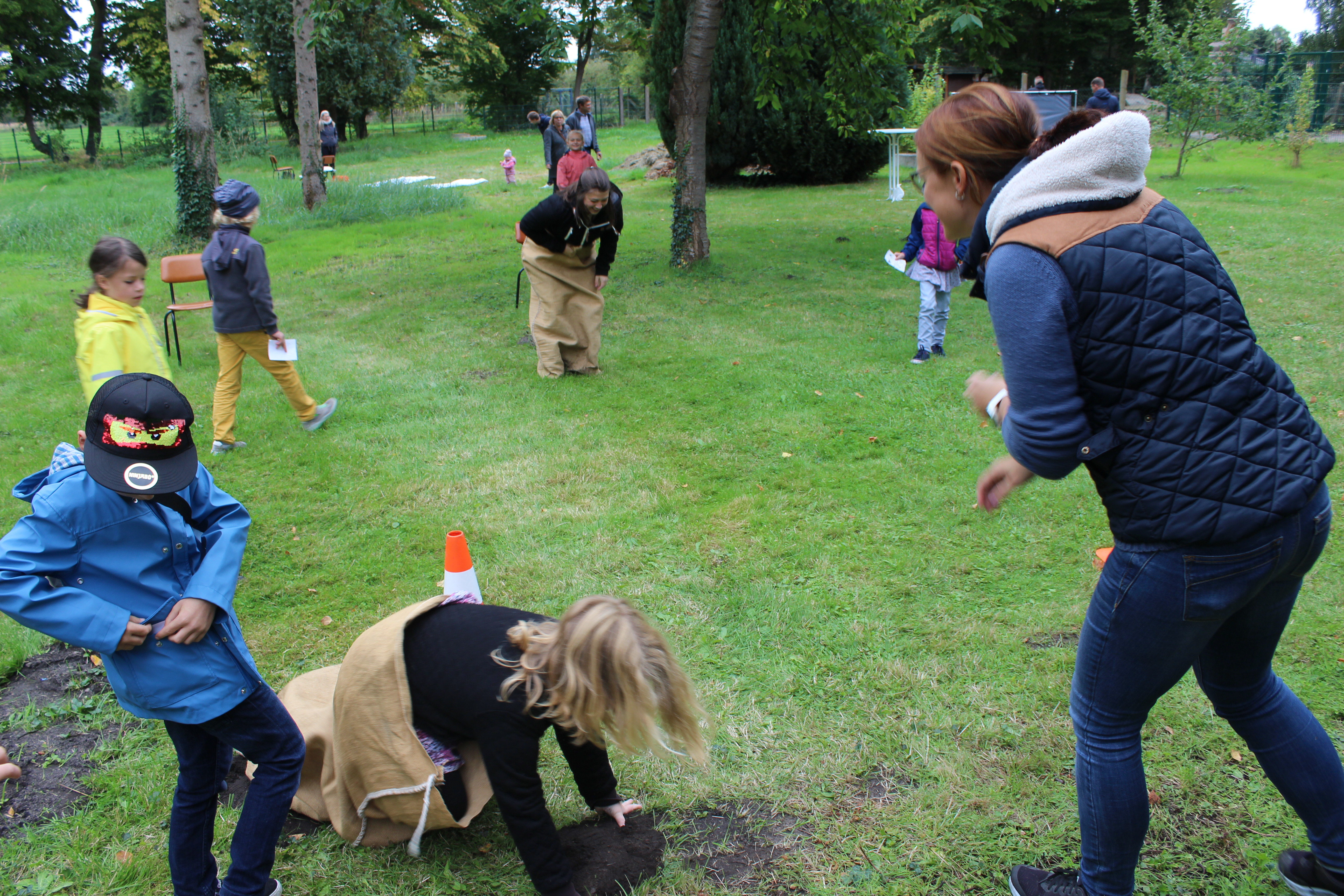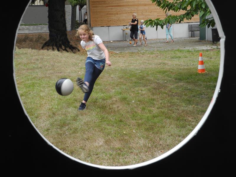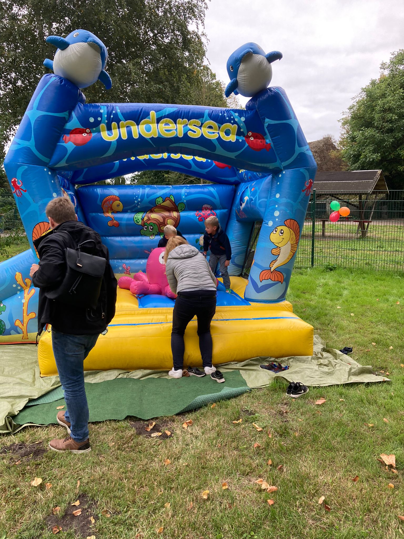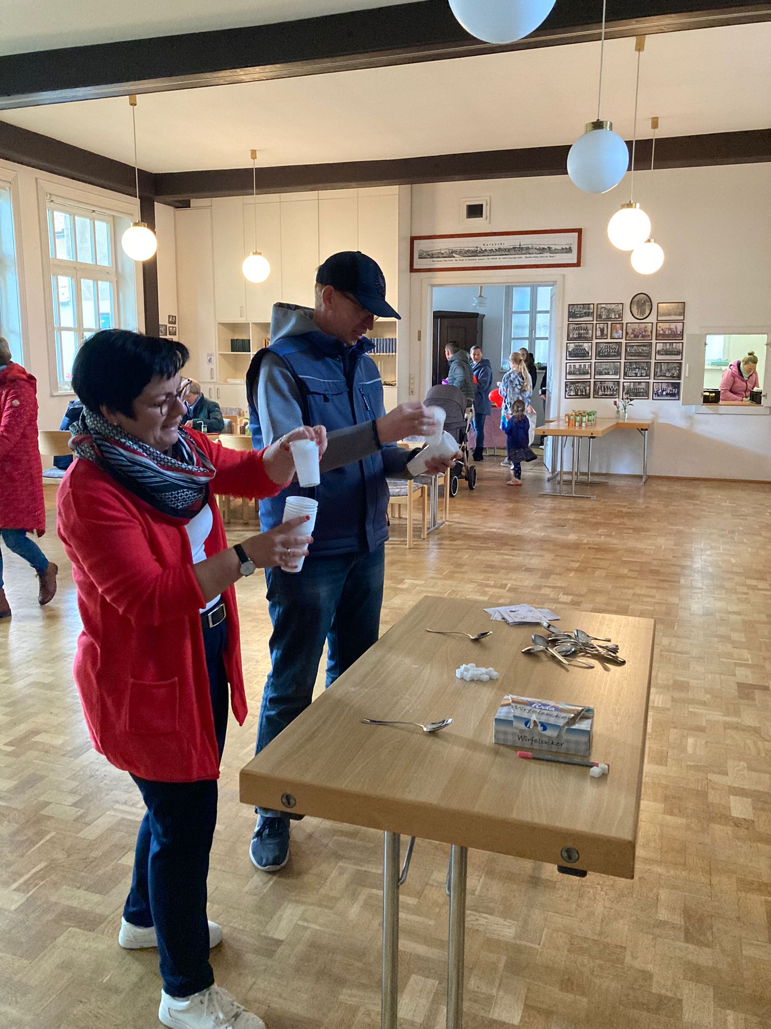 Im Anschluss ging es auf den Pfarrhof zum Familienfest. Dort konnten alle, egal ob groß oder klein, sich bei verschiedenen Spielen bewegen oder ihre Geschicklichkeit testen. Als Belohnung waren kleine Preise für die Kinder vorbereitet. Auch eine Hüpfburg stand wieder zum Toben bereit.