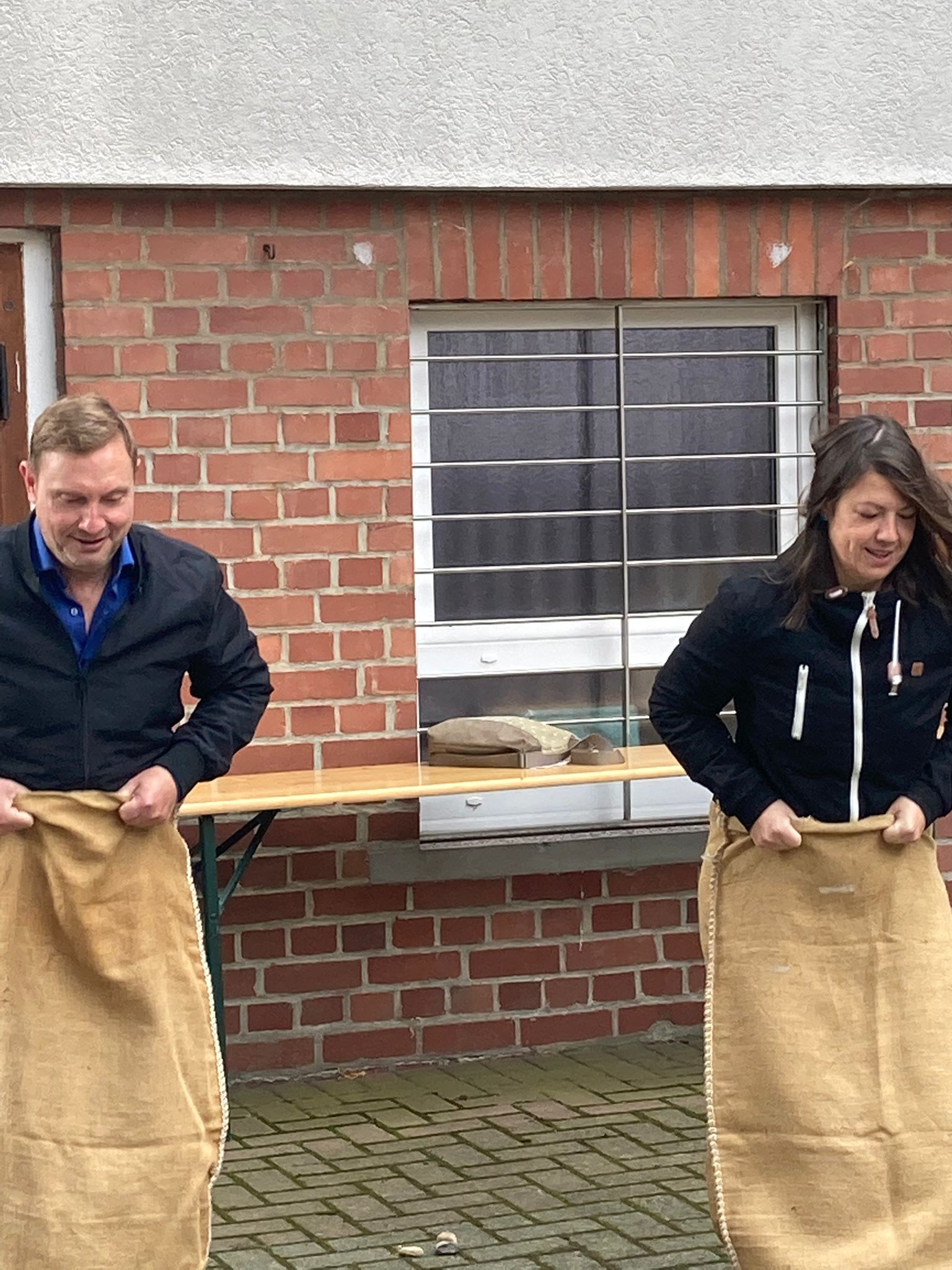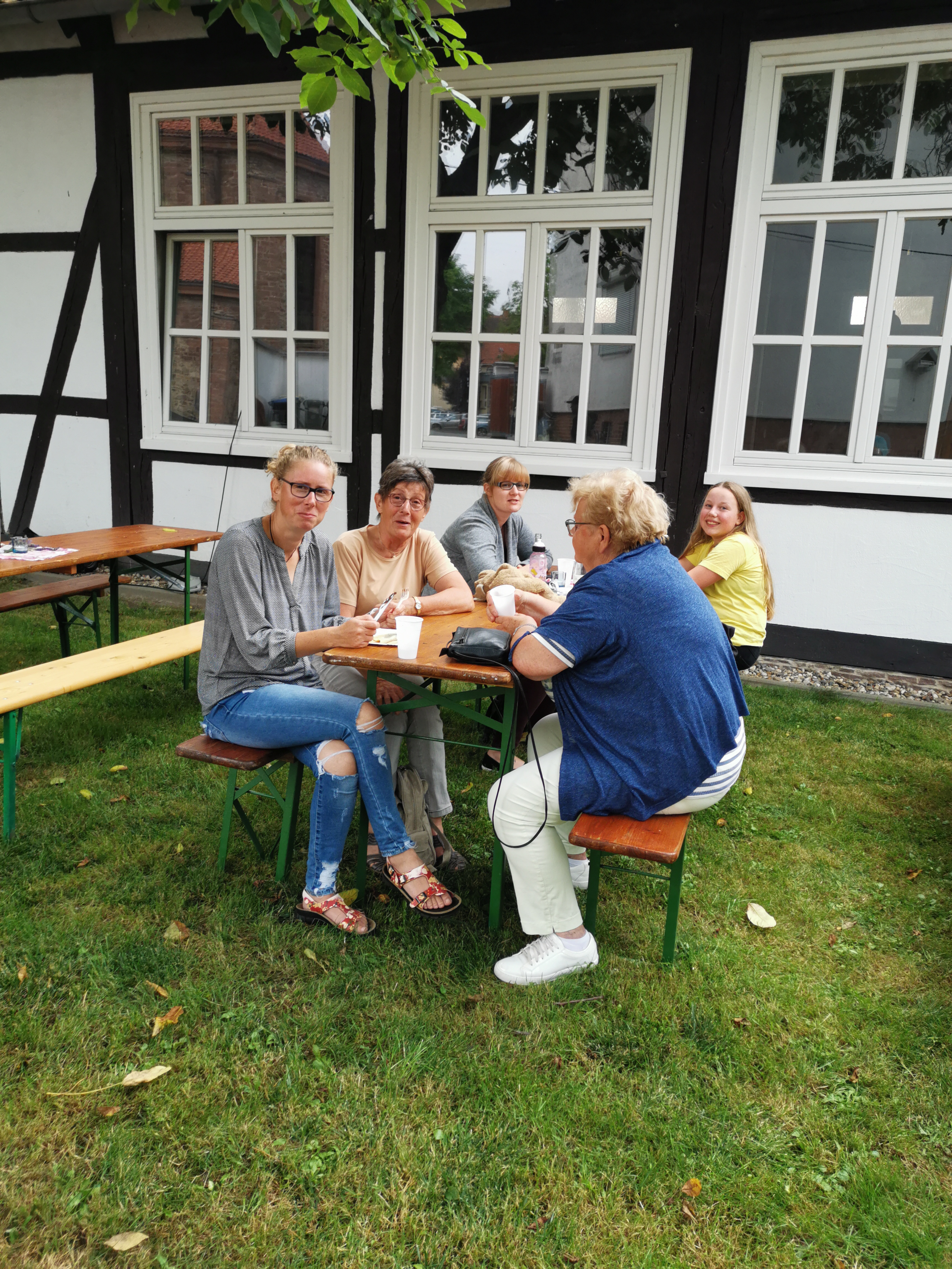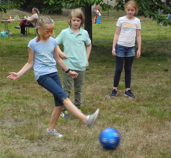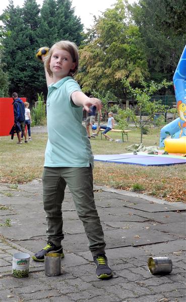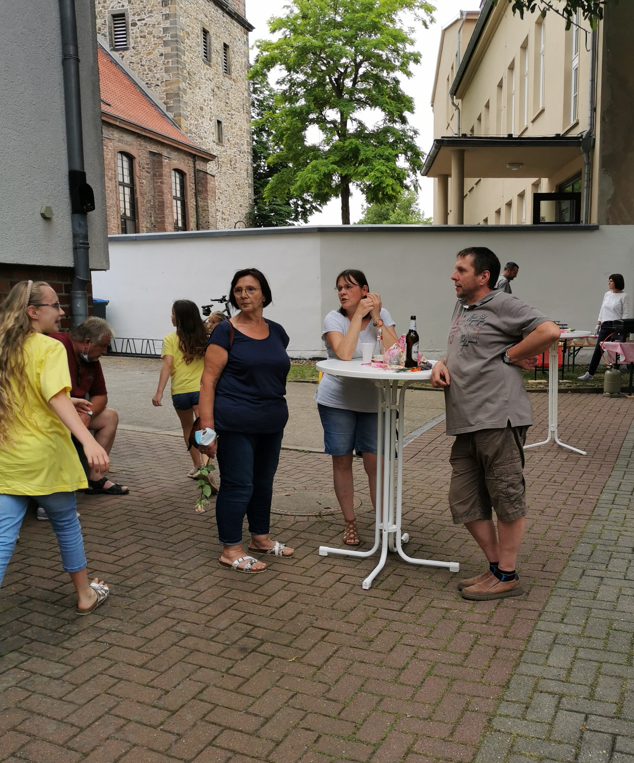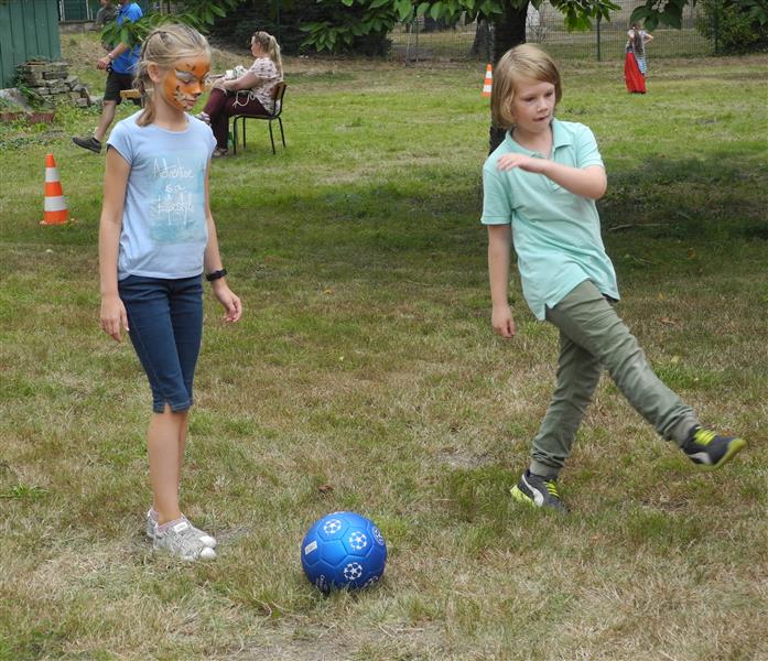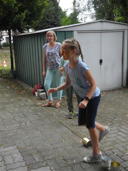Im Anschluss ging es auf den Pfarrhof zum Familienfest. Dort konnten alle, egal ob groß oder klein, sich bei verschiedenen Spielen bewegen oder ihre Geschicklichkeit testen. Als Belohnung waren kleine Preise für die Kinder vorbereitet. Auch eine Hüpfburg stand wieder zum Toben bereit.