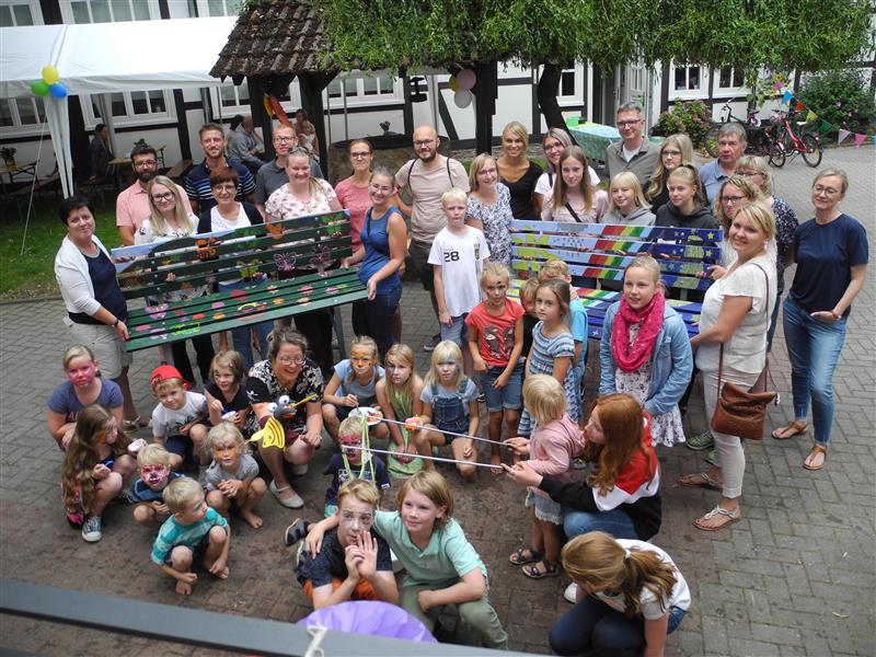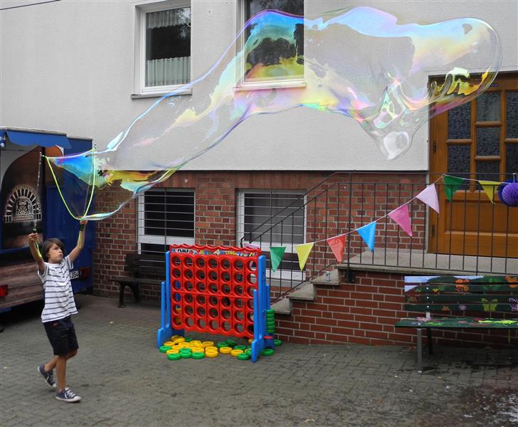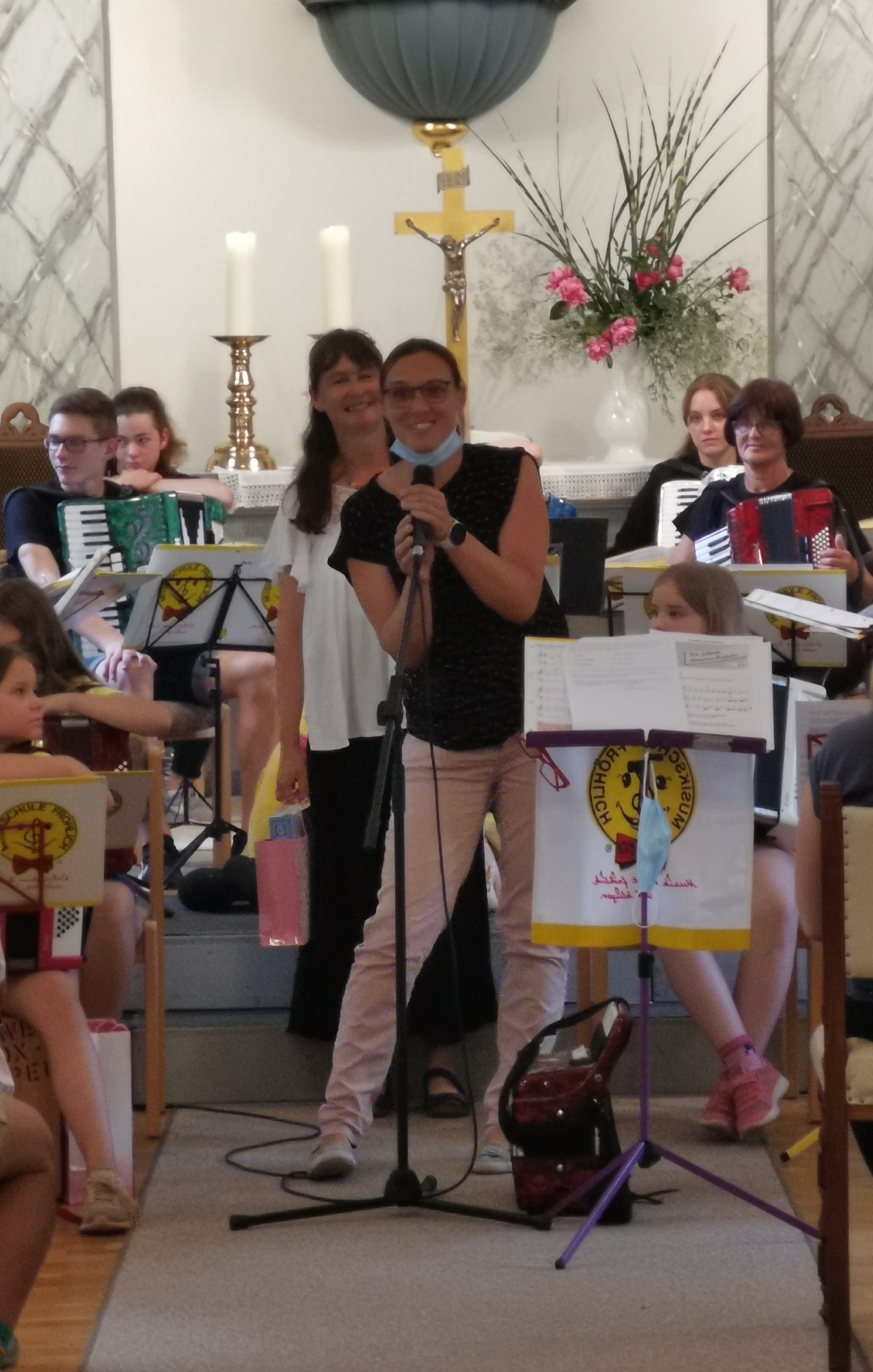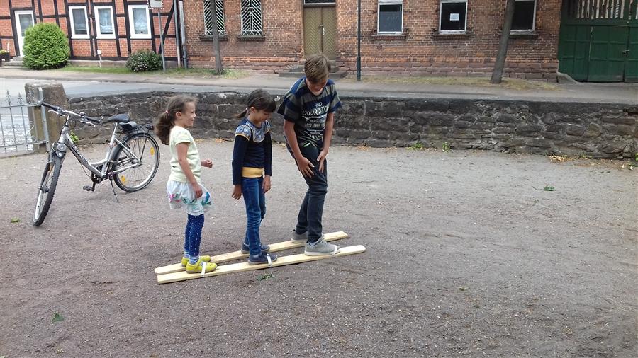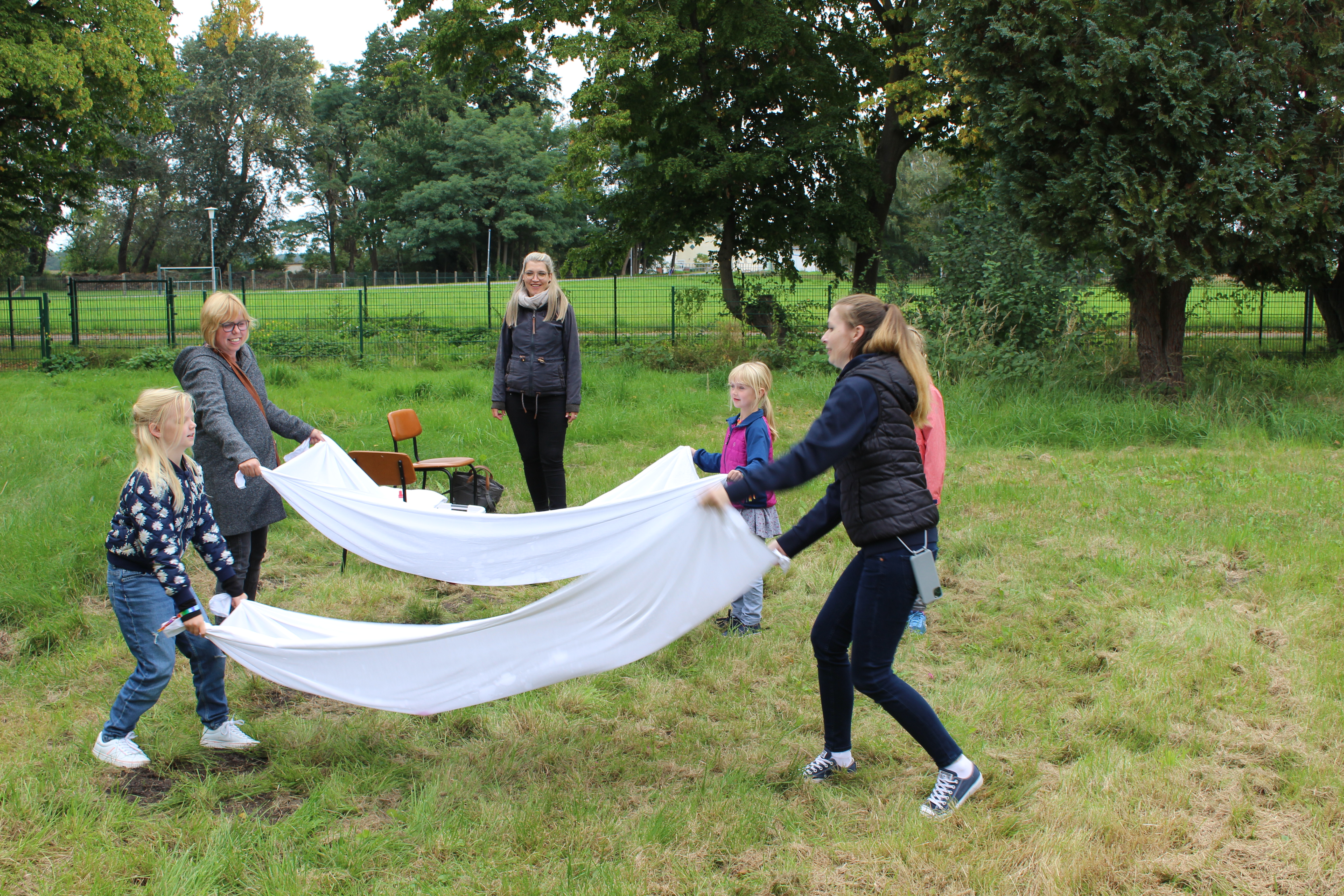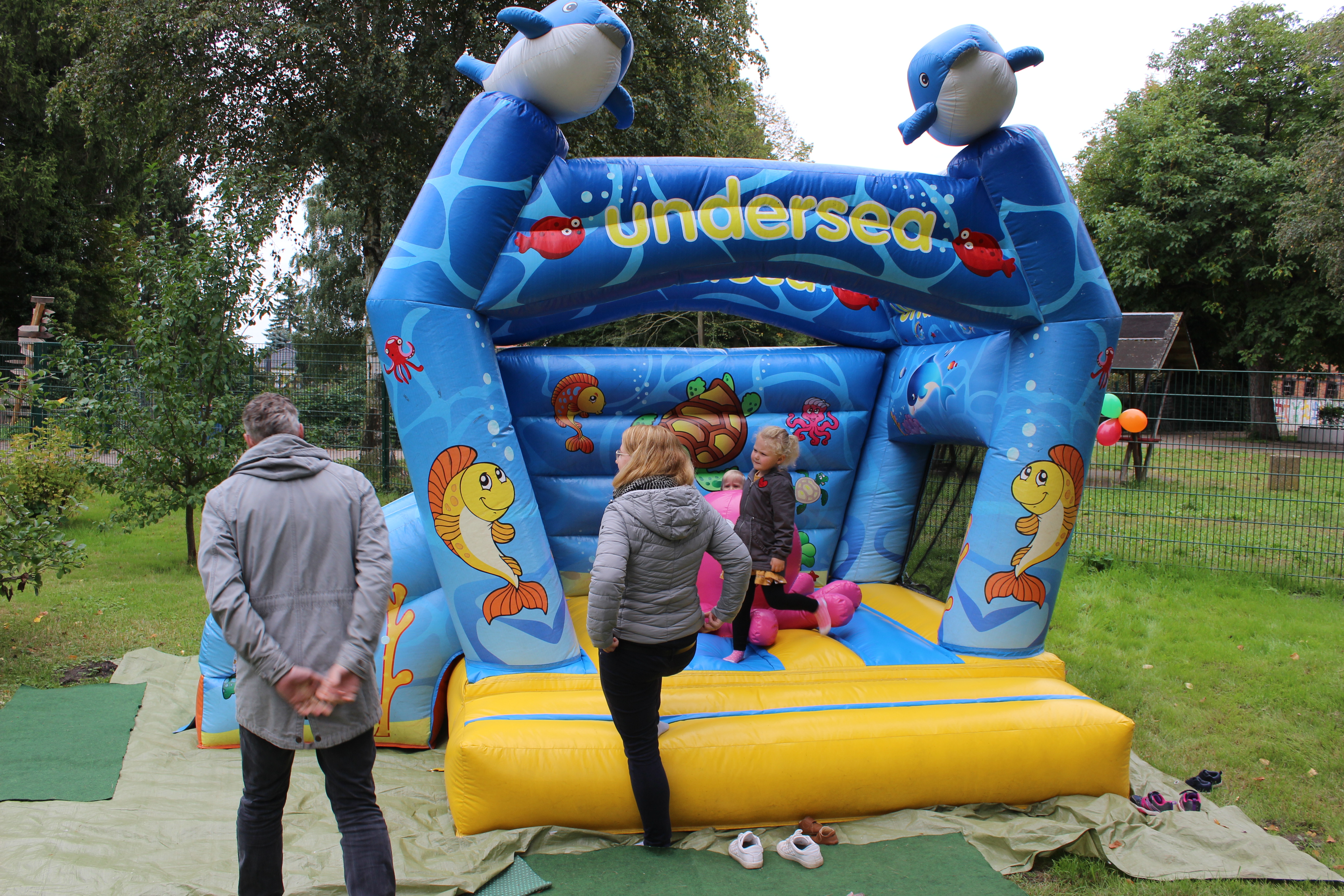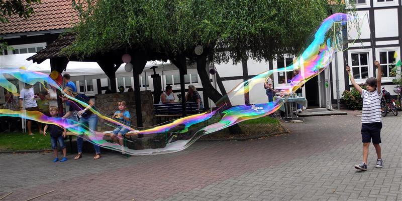 Im Anschluss ging es auf den Pfarrhof zum Familienfest. Dort konnten alle, egal ob groß oder klein, sich bei verschiedenen Spielen bewegen oder ihre Geschicklichkeit testen. Als Belohnung waren kleine Preise für die Kinder vorbereitet. Auch eine Hüpfburg stand wieder zum Toben bereit.