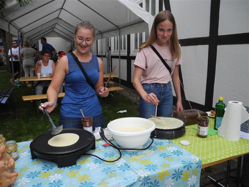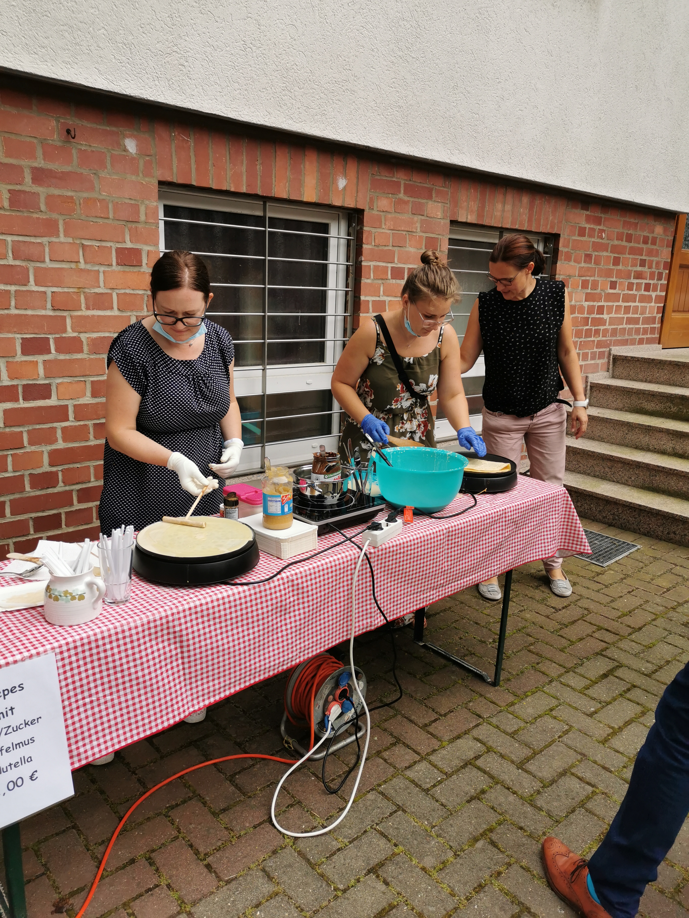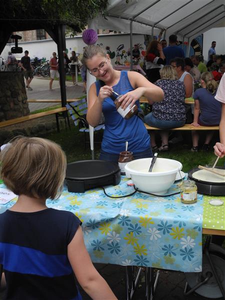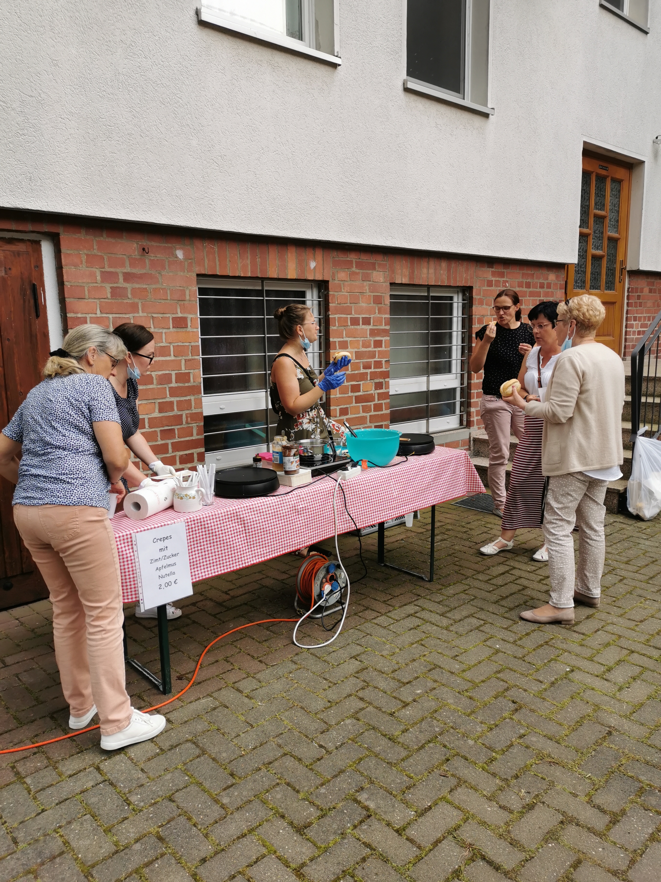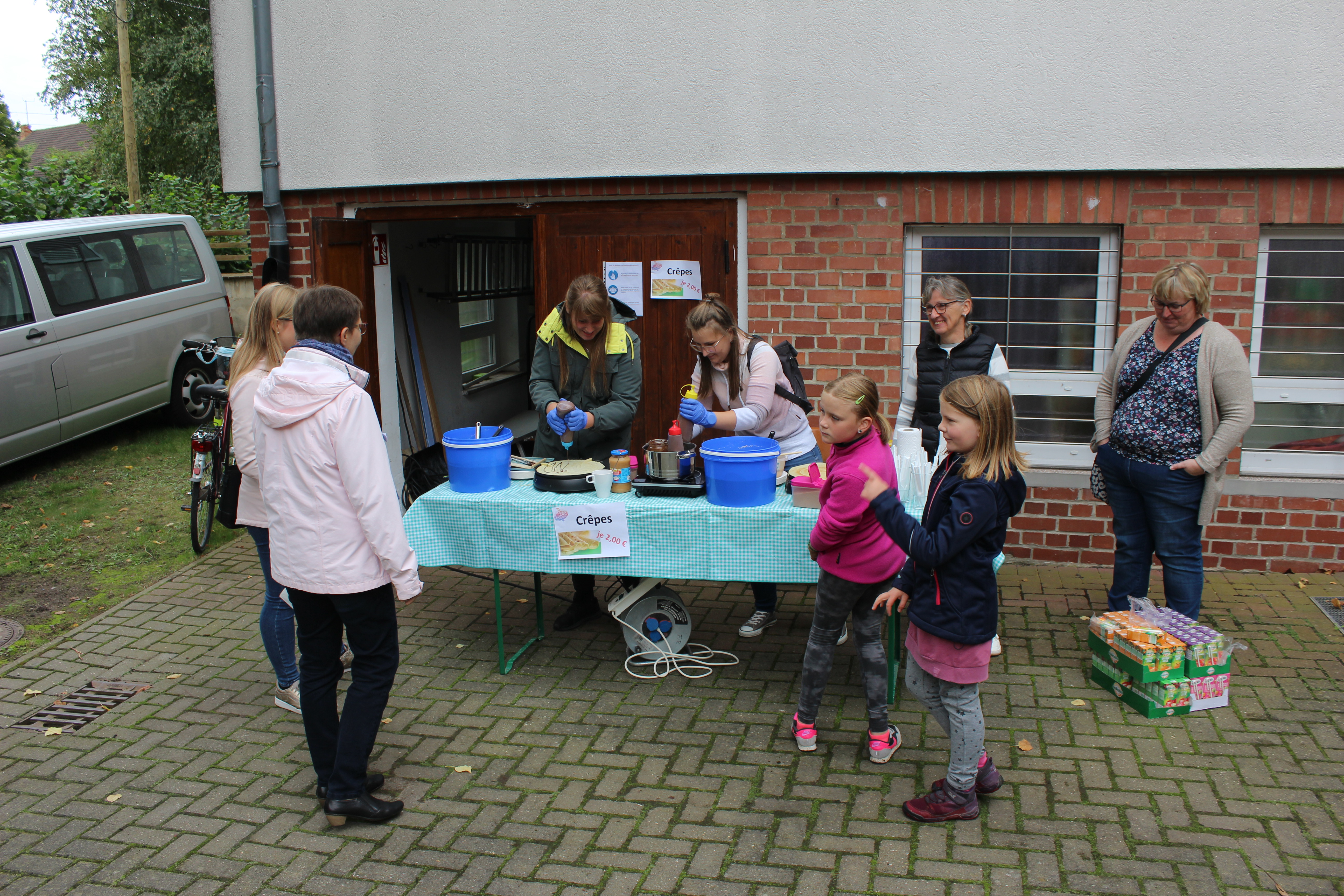Für das leibliche Wohl gab es wieder viele Leckereien, wie Bratwürste, Crêpes und selbstgebackenen Kuchen.