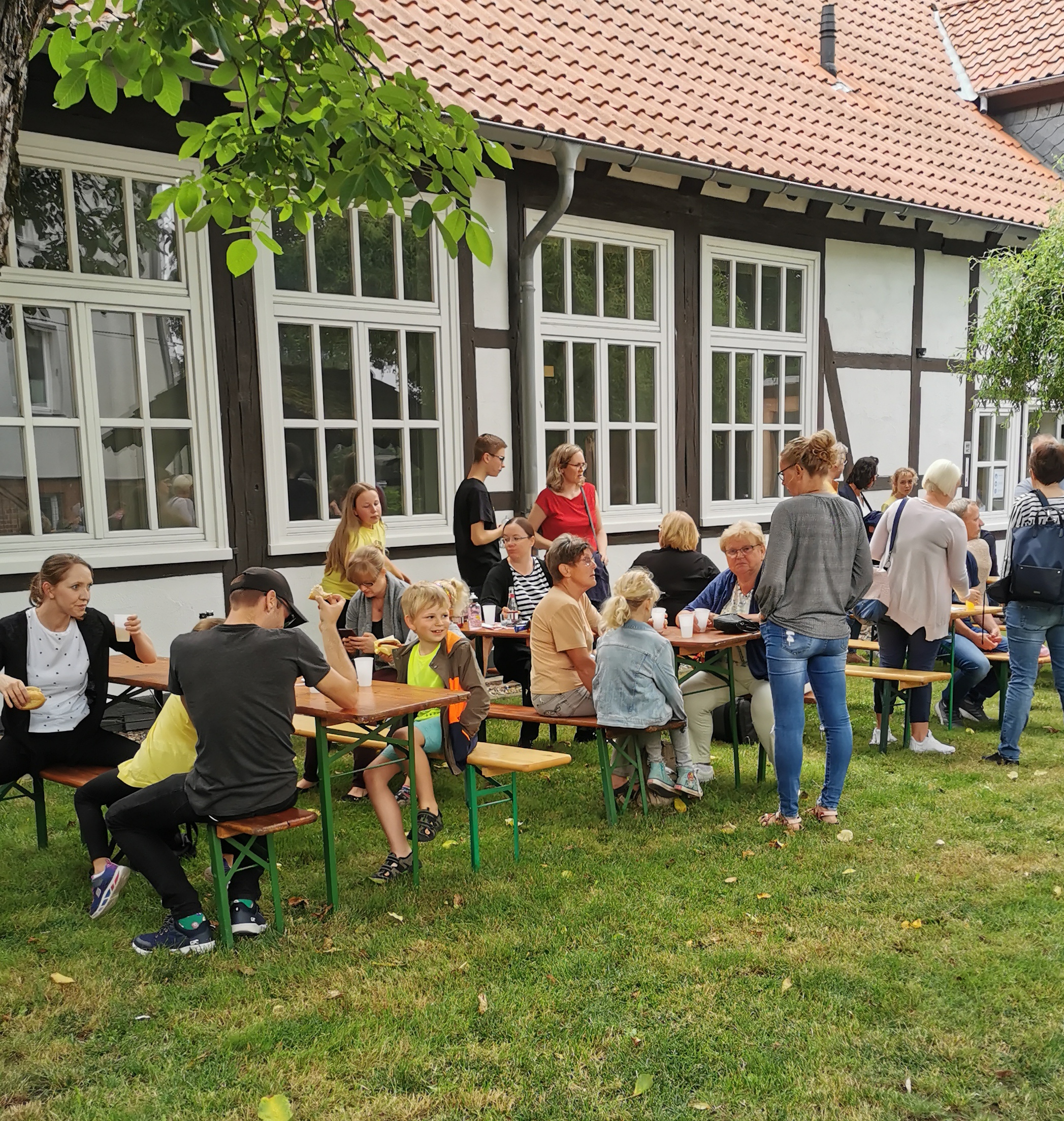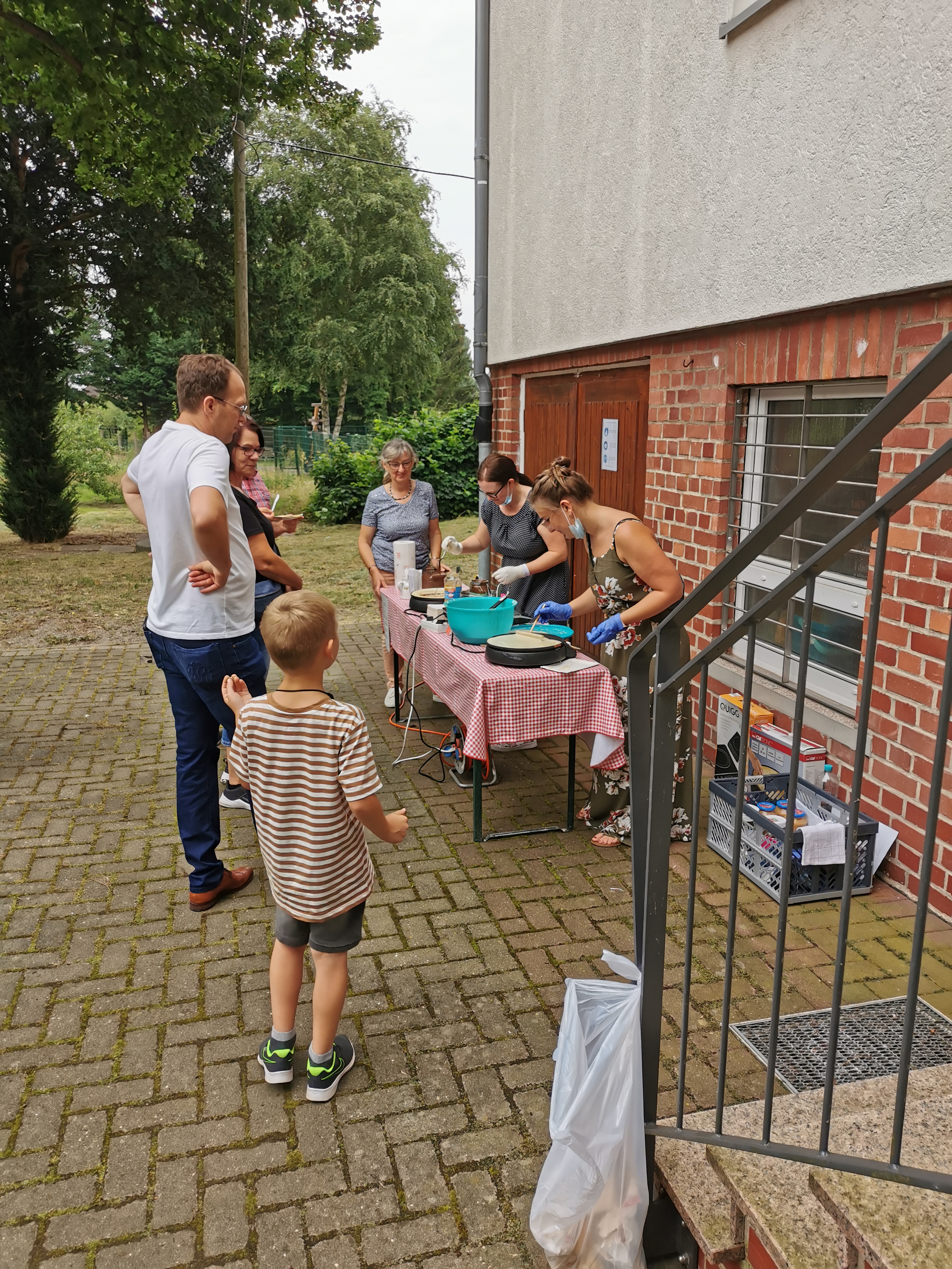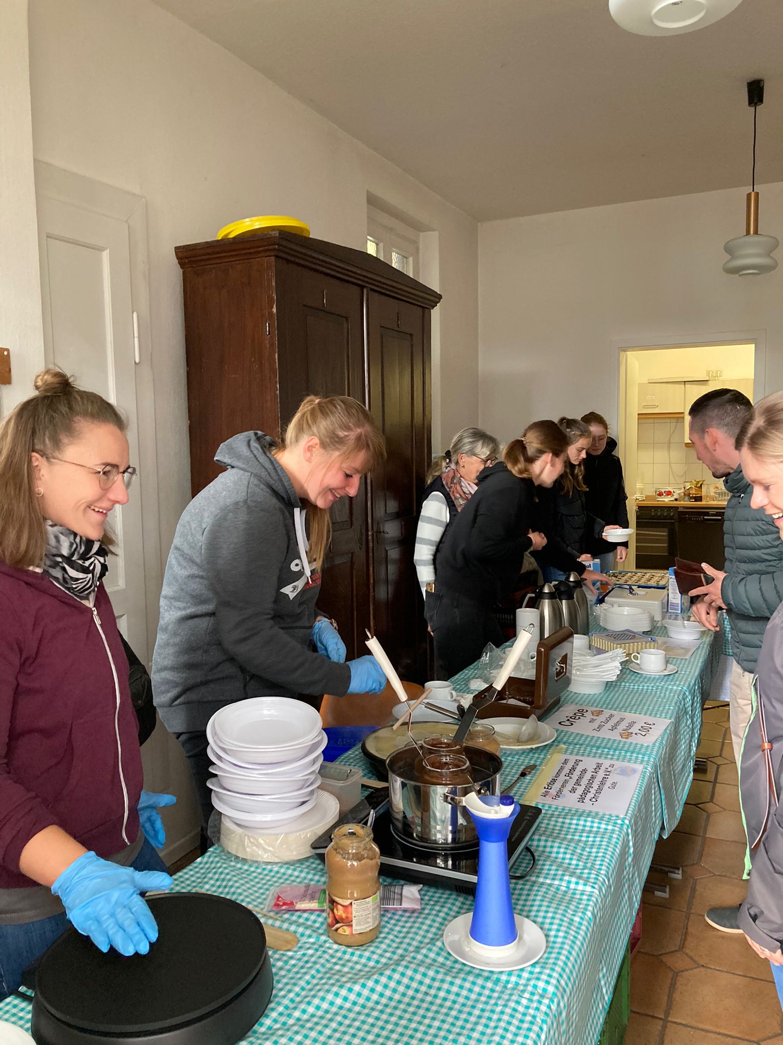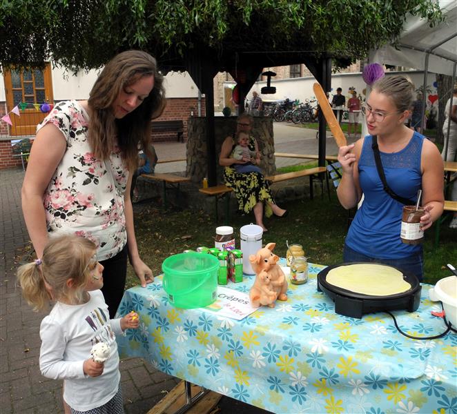 Für das leibliche Wohl gab es wieder viele Leckereien, wie Bratwürste, Crêpes und selbstgebackenen Kuchen.