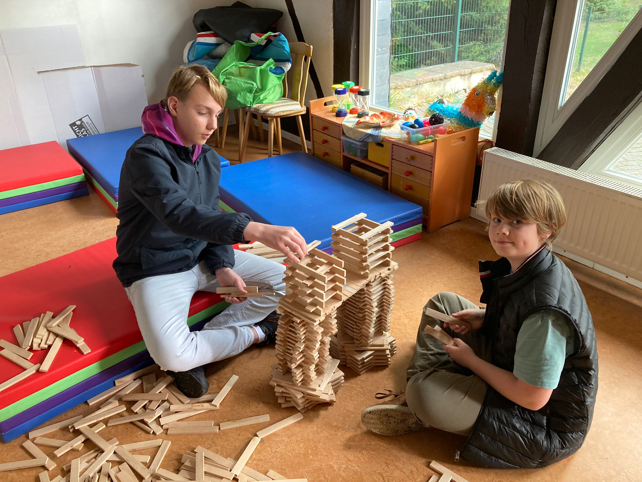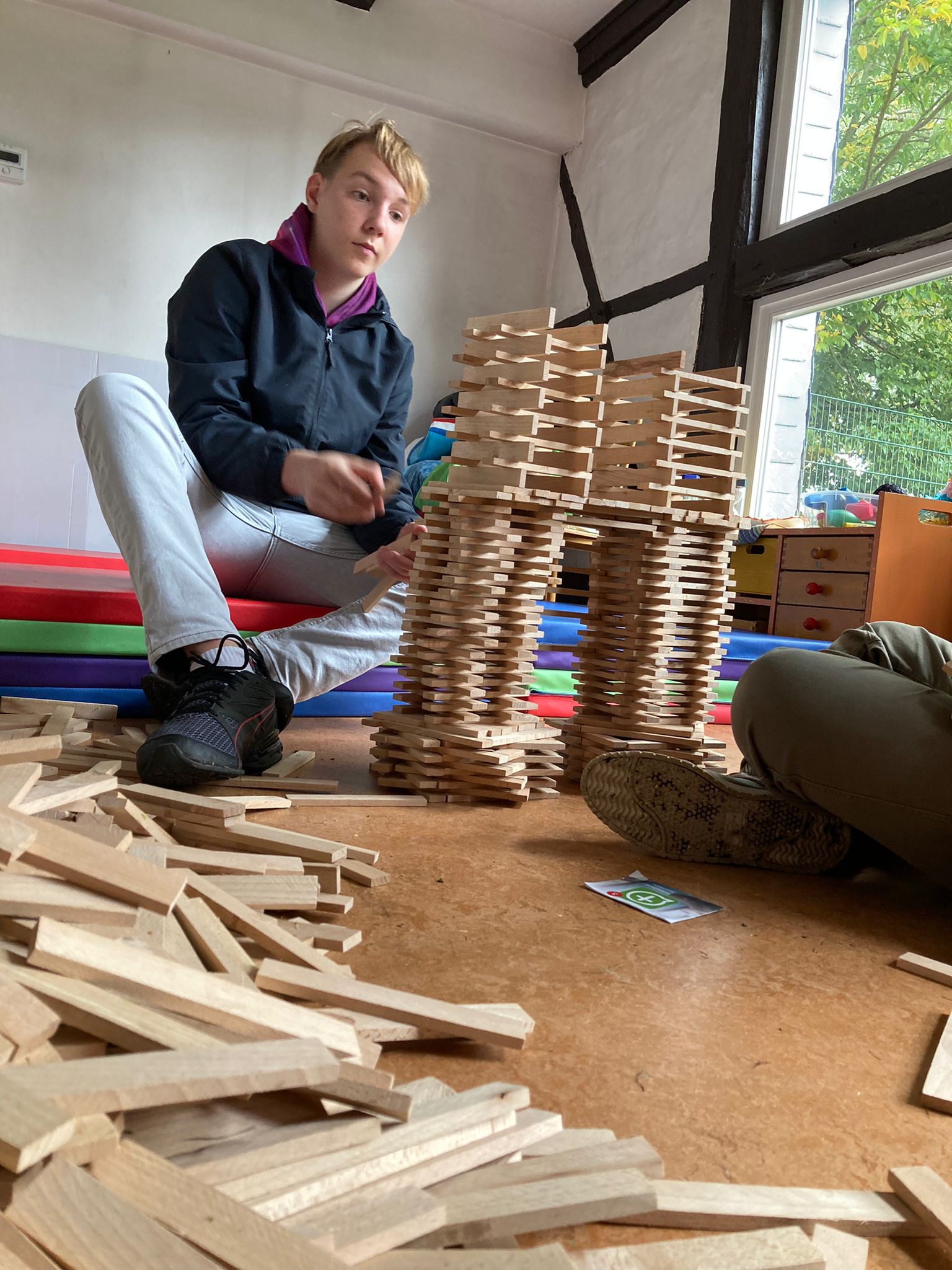 Beim Familienfest am 18.9.2022 konnte man aus unzähligen Holzabausteinen Türme bauen und sie einstürzen lassen.